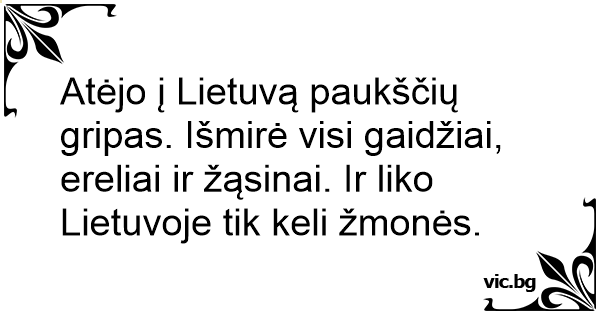 Atėjo į Lietuvą paukščių gripas. Išmirė visi gaidžiai, ereliai ir žąsinai. Ir liko Lietuvoje tik keli žmonės.