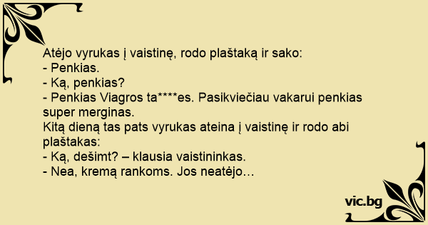 Kitą dieną tas pats vyrukas ateina į vaistinę ir rodo abi plaštakas: