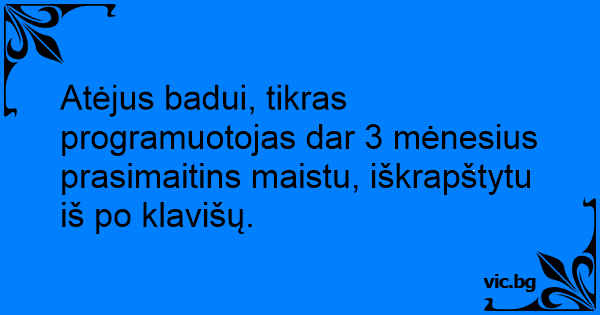 Atėjus badui, tikras programuotojas dar 3 mėnesius prasimaitins maistu, iškrapštytu iš po klavišų.