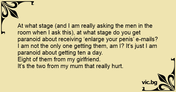 At what stage (and I am really asking the men in the room when I ask this), at what stage do you get paranoid about receiving ‘enlarge your реnis’ e-mails?
