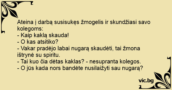 - Tai kuo čia dėtas kaklas? - nesupranta kolegos.