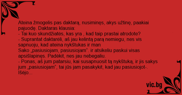 - Pasiusiojam, pasiusiojam! Žmogelis sapne jam atsako: