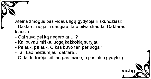 - Daktare, negaliu daugiau, taip pilvą skauda. Daktaras ir klausia: