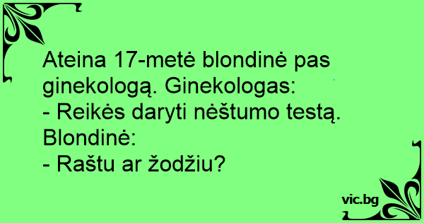 Ateina 17-metė blondinė pas ginekologą. Ginekologas: