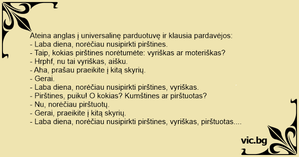 Ateina anglas į universalinę parduotuvę ir klausia pardavėjos: