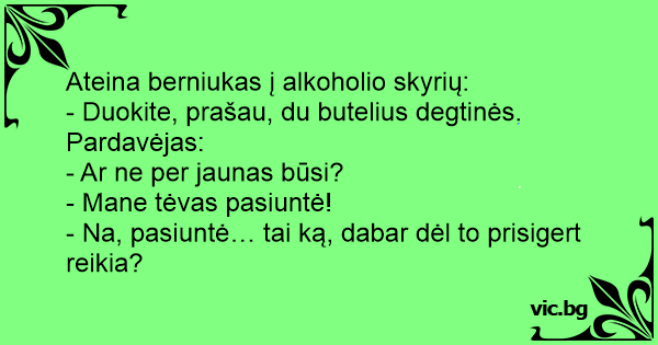 - Na, pasiuntė… tai ką, dabar dėl to prisigert reikia?