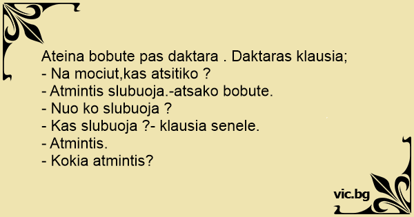 Ateina bobute pas daktara . Daktaras klausia;