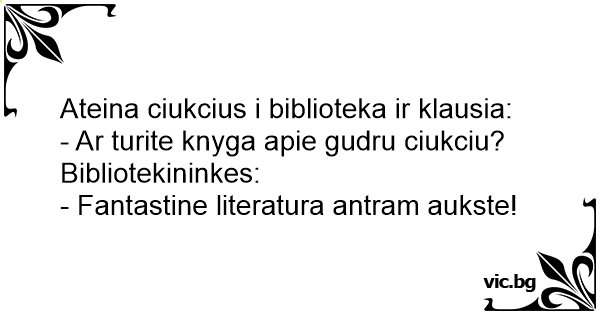 Ateina ciukcius i biblioteka ir klausia: