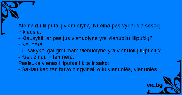 Ateina du liliputai į vienuolyną. Nueina pas vyriausią seserį ir klausia: