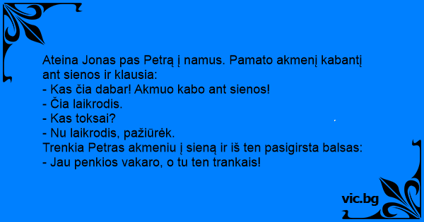 Trenkia Petras akmeniu į sieną ir iš ten pasigirsta balsas: