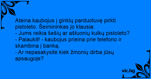 Ateina kaubojus į ginklų parduotuvę pirkti pistoleto. Šeimininkas jo klausia: