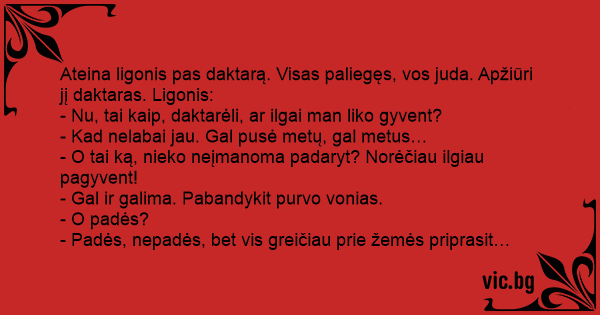 - Nu, tai kaip, daktarėli, ar ilgai man liko gyvent?