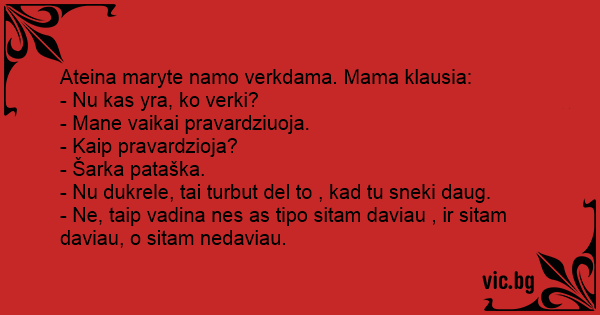 - Nu dukrele, tai turbut del to , kad tu sneki daug.