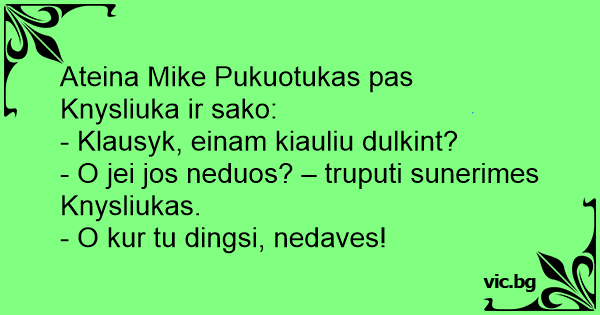Ateina Mike Pukuotukas pas Knysliuka ir sako: