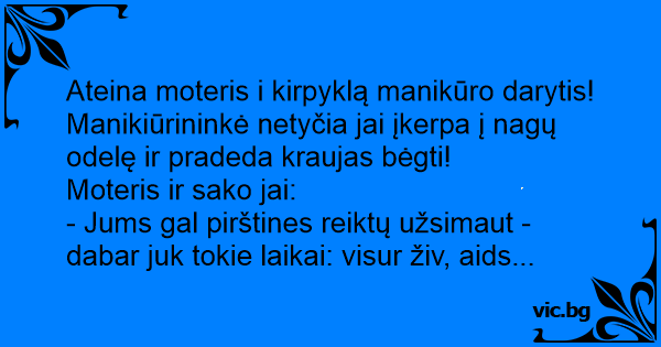 - Jums gal pirštines reiktų užsimaut -dabar juk tokie laikai: visur živ, aids...