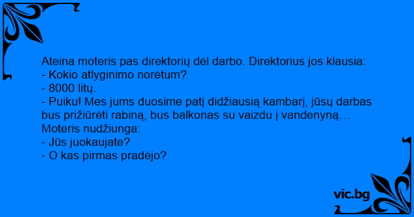 Ateina moteris pas direktorių dėl darbo. Direktorius jos klausia: