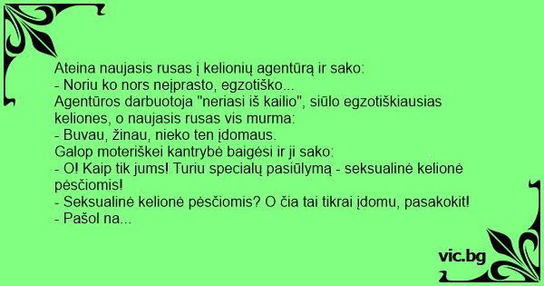 - O! Kaip tik jums! Turiu specialų pasiūlymą - seksualinė kelionė pėsčiomis!