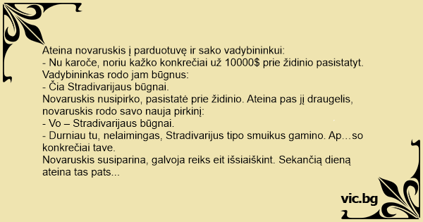 - Durniau tu, nelaimingas, Stradivarijus tipo smuikus gamino. Ap…so konkrečiai tave.