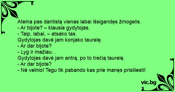 Ateina pas dantistą vienas labai išsigandęs žmogelis.