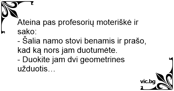 Ateina pas profesorių moteriškė ir sako: