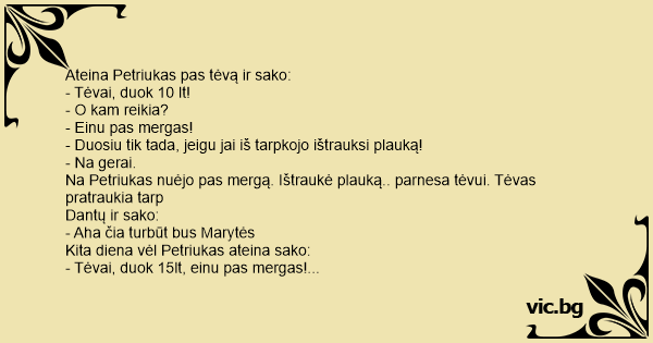 - Tėvai, duok 15lt, einu pas mergas!