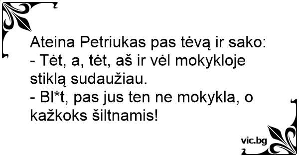 - Tėt, a, tėt, aš ir vėl mokykloje stiklą sudaužiau.