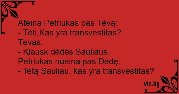 - Tėti,Kas yra transvestitas?