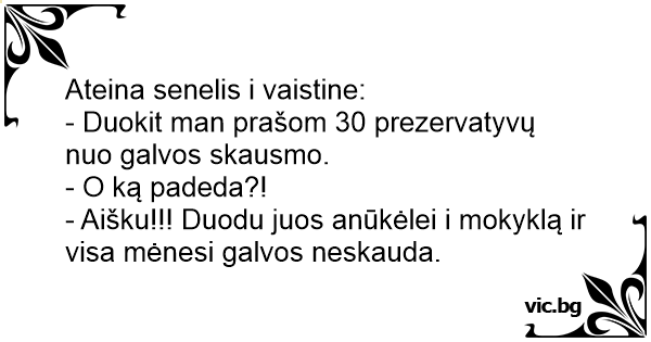 - Duokit man prašom 30 prezervatyvų nuo galvos skausmo.