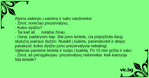 Vaikinas pasiėmė lentelę ir nuėjo į tualetą. Po 10 min grižta ir sako: