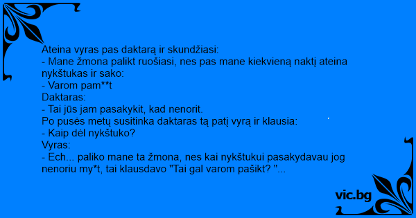 - Mane žmona palikt ruošiasi, nes pas mane kiekvieną naktį ateina nykštukas ir sako:
