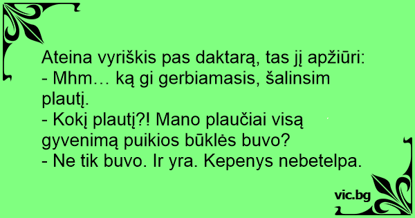- Kokį plautį?! Mano plaučiai visą gyvenimą puikios būklės buvo?