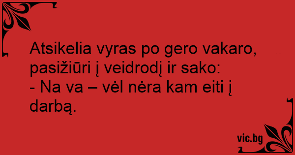 Atsikelia vyras po gero vakaro, pasižiūri į veidrodį ir sako: