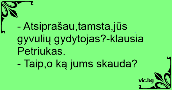 - Atsiprašau,tamsta,jūs gyvulių gydytojas?-klausia Petriukas.