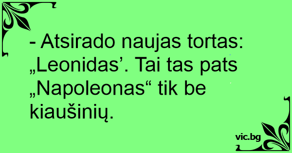 - Atsirado naujas tortas: „Leonidas’. Tai tas pats „Napoleonas“ tik be kiaušinių.