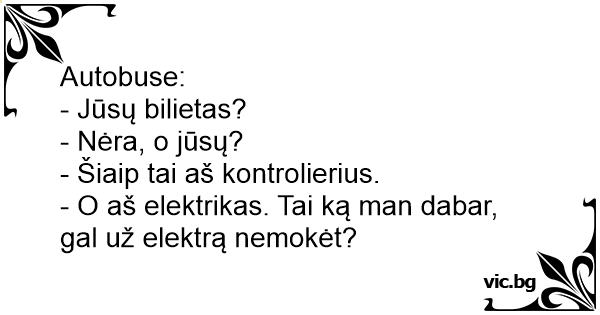 - O aš elektrikas. Tai ką man dabar, gal už elektrą nemokėt?