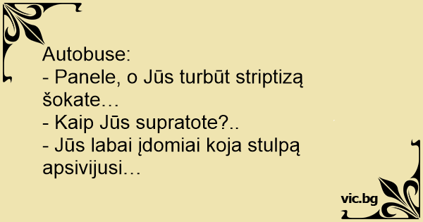 - Jūs labai įdomiai koja stulpą apsivijusi…