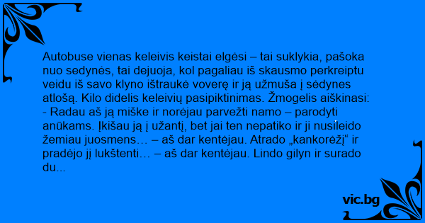 Autobuse vienas keleivis keistai elgėsi – tai suklykia, pašoka nuo sedynės, tai dejuoja, kol pagaliau iš skausmo perkreiptu veidu iš savo klyno ištraukė voverę ir ją užmuša į sėdynes atlošą. Kilo didelis keleivių pasipiktinimas. Žmogelis aiškinasi: