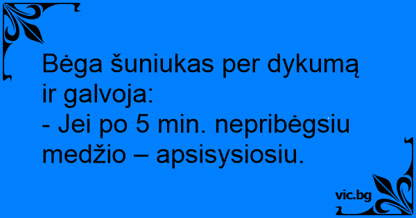 - Jei po 5 min. nepribėgsiu medžio – apsisysiosiu.