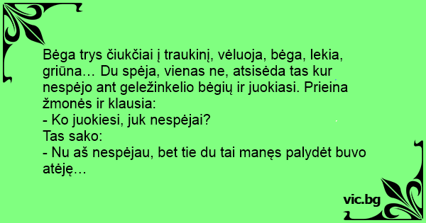 - Ko juokiesi, juk nespėjai?