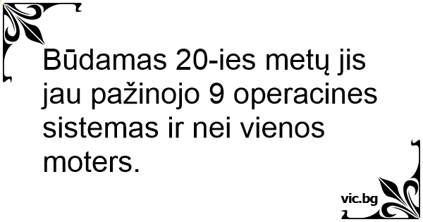 Būdamas 20-ies metų jis jau pažinojo 9 operacines sistemas ir nei vienos moters.