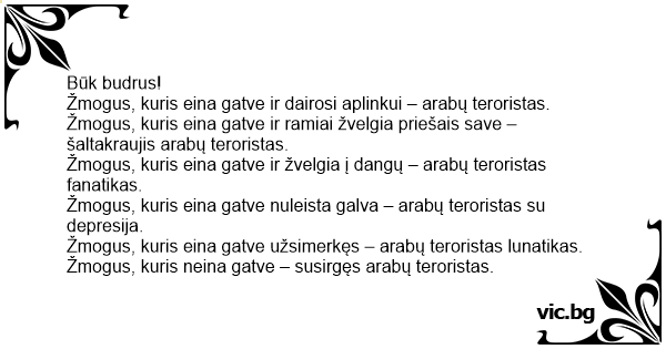 Žmogus, kuris neina gatve – susirgęs arabų teroristas.