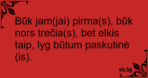 Būk jam(jai) pirma(s), būk nors trečia(s), bet elkis taip, lyg būtum paskutinė(is).