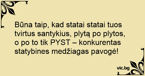 Būna taip, kad statai statai tuos tvirtus santykius, plytą po plytos, o po to tik PYST – konkurentas statybines medžiagas pavogė!