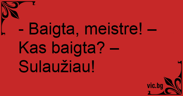 - Baigta, meistre! – Kas baigta? – Sulaužiau!