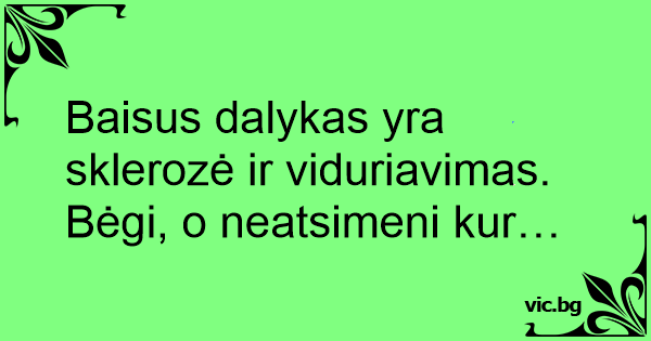 Baisus dalykas yra sklerozė ir viduriavimas. Bėgi, o neatsimeni kur…