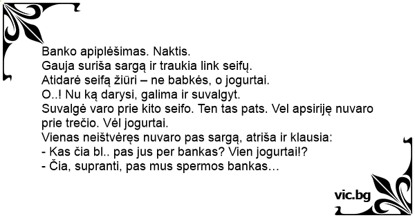 Suvalgė varo prie kito seifo. Ten tas pats. Vel apsiriję nuvaro prie trečio. Vėl jogurtai.