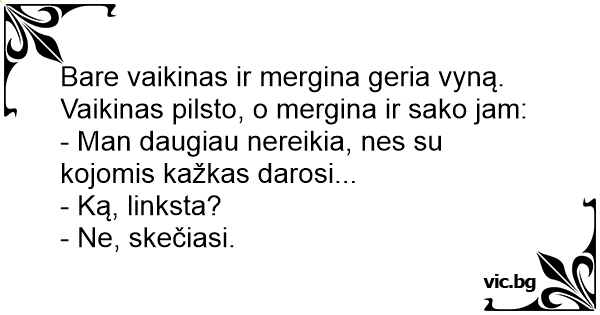 Bare vaikinas ir mergina geria vyną. Vaikinas pilsto, o mergina ir sako jam:
