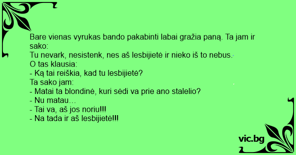 Bare vienas vyrukas bando pakabinti labai gražia paną. Ta jam ir sako: