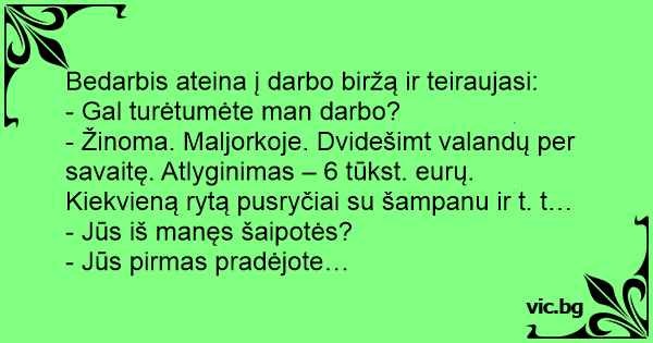 Bedarbis ateina į darbo biržą ir teiraujasi: