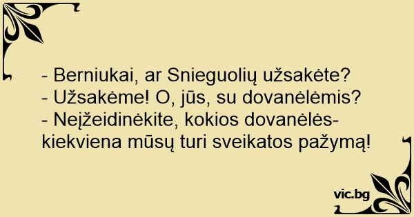 - Neįžeidinėkite, kokios dovanėlės- kiekviena mūsų turi sveikatos pažymą!
